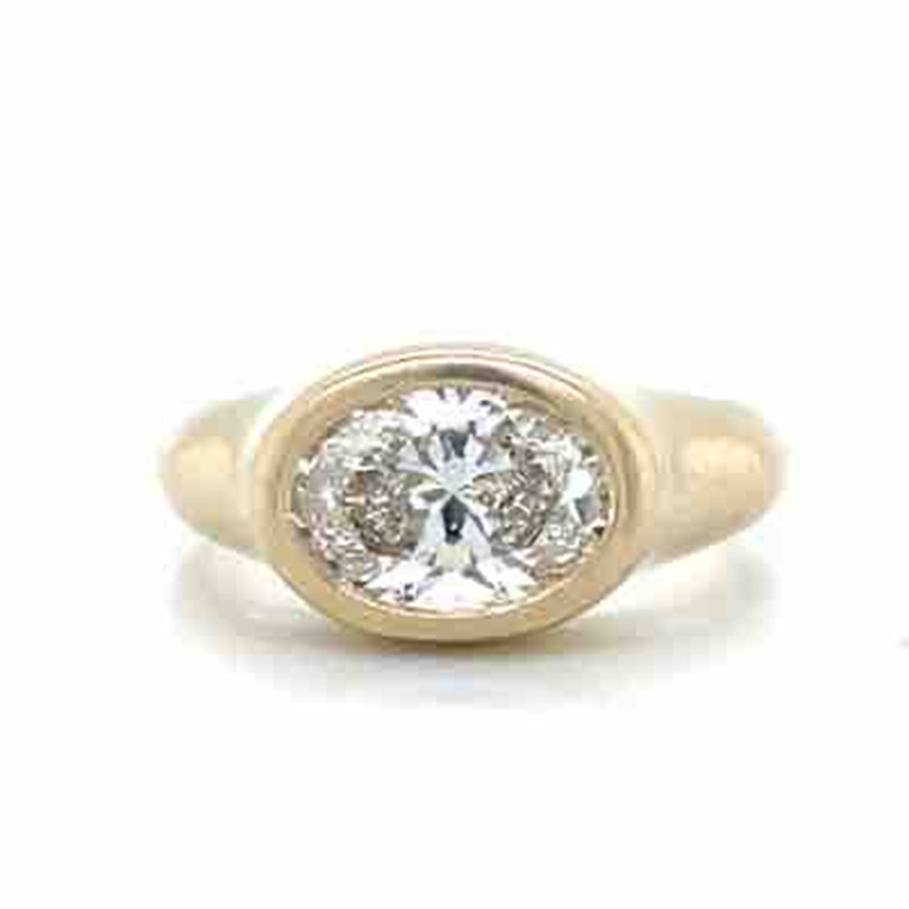 'Ayla' 9k Yellow Gold 2.01ct F VS2 Oval LG Diamond Ring - Created in the John Franich Collection - a 9k Yellow Gold Satin Finished Ring, featuring a 2.01ct F VS2 Oval Lab Grown Diamond. This modern piece combines timeless beauty with modern craftsmanship, offering a sophisticated and refined look for those who appreciate luxury. A perfect blend of brilliance and understated style, ideal for any special occasion.
