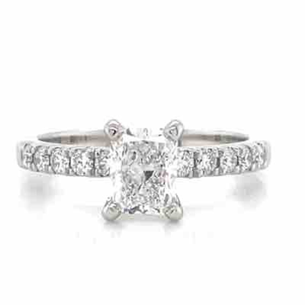 "Paula" Platinum 1.01ct D SI1 Radiant & 10=0.30ct FG SI Round Diamonds Ring - Created in the John Franich Collection - Crafted in luxurious platinum, this ring showcases a 1.01ct radiant-cut diamond, accented by round brilliant diamonds. A perfect harmony of brilliance and elegance.