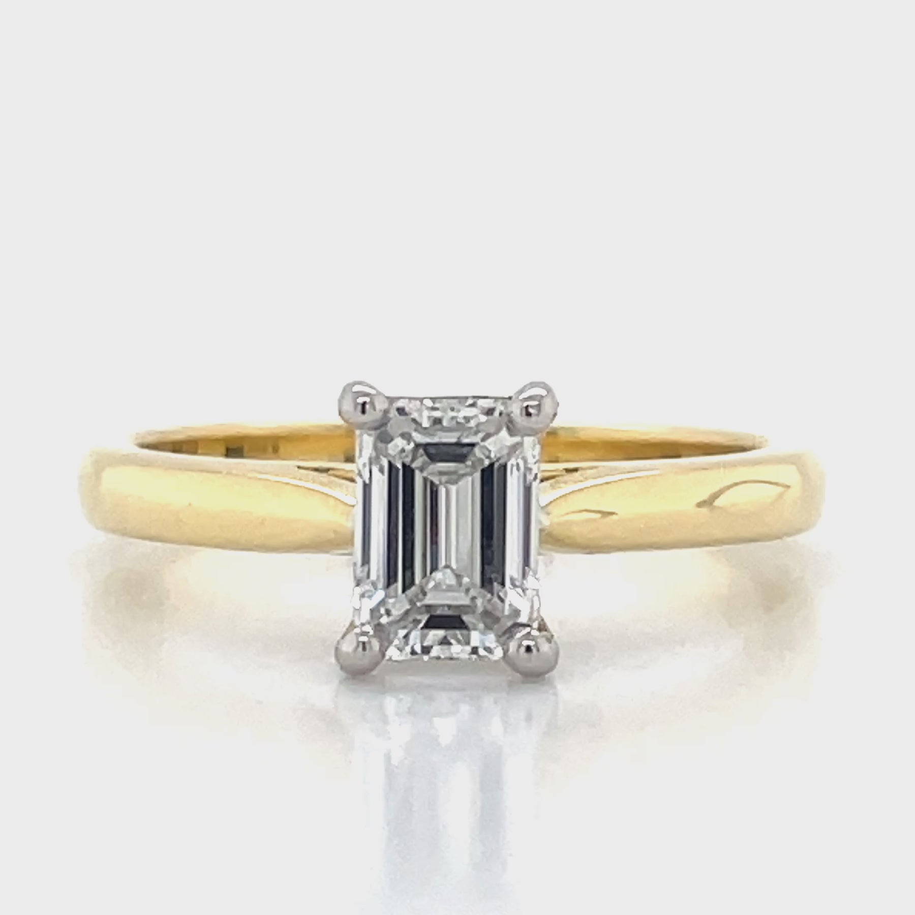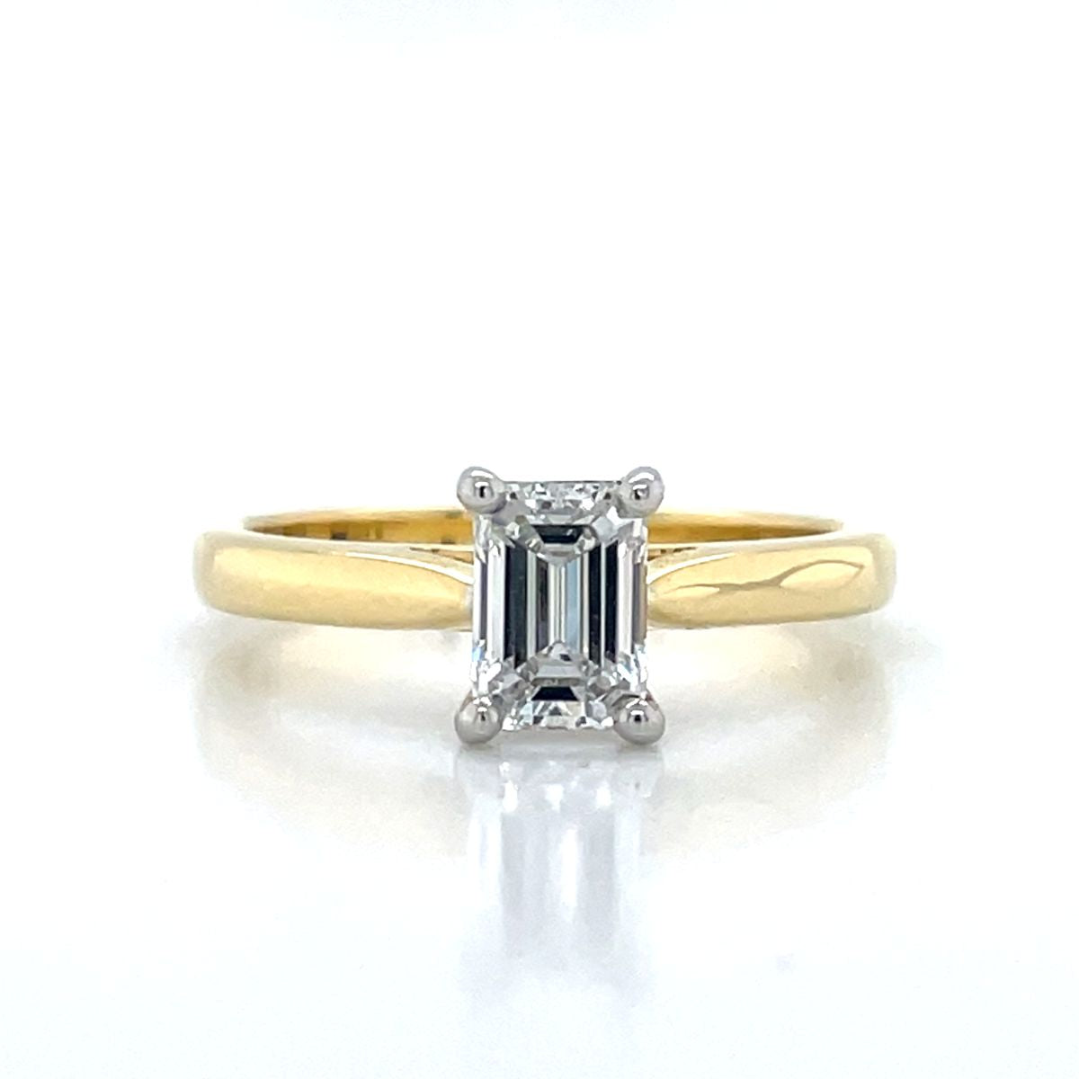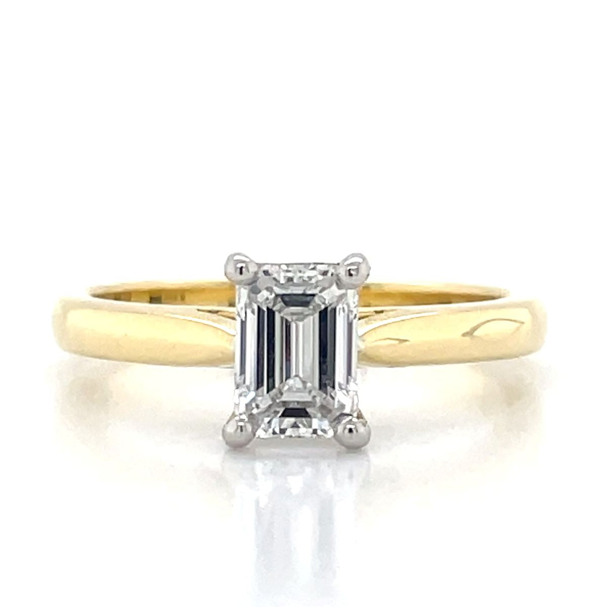 'Melanie' 18k Yellow Gold & Platinum 0.90ct E VS2 Emerald Cut Diamond Ring - created in the John Franich collection, sleek and sophisticated, an emerald cut diamond engagement ring will never go out of fashion, and it will symbolise love and commitment, Made in NZ.