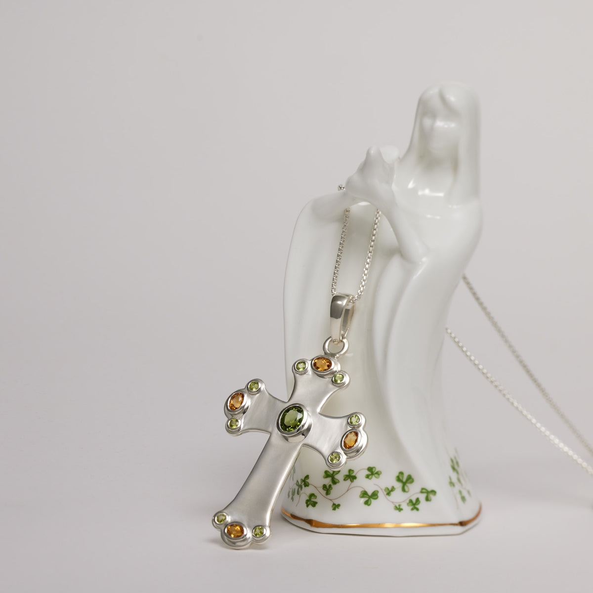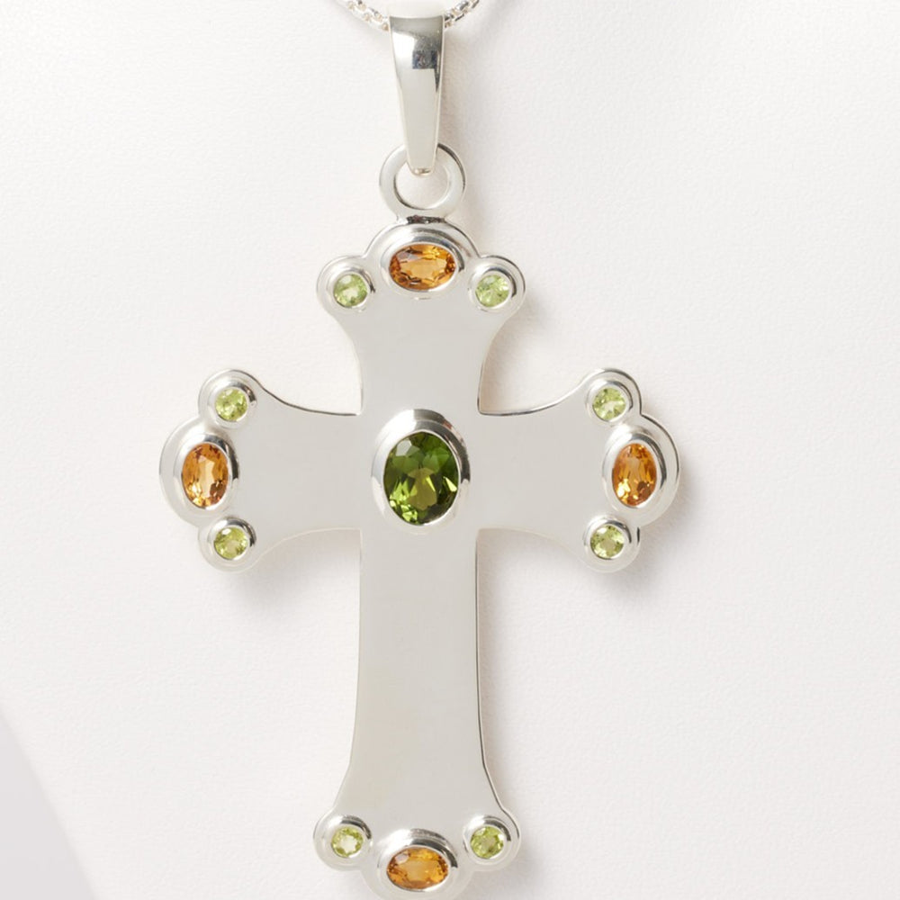 Stg Silver 2.82ct Green Tourmaline, Peridot & Citrine Cross Pendant